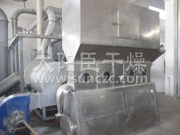 洁净的热风经阀板分配进入床体内,从加料器进入的湿物料被热风形成沸腾状态。由于热风与物料广泛接触,增强了传热传质的过程,因此在较短时间内就可干燥。如用连续型,物料从床体的一头进入,经过几十秒至几分钟沸腾干燥,自动从床体另一头流出。本设备一般进行负压操作。